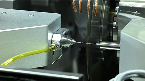 五轴加工方式主研磨可倾斜角度。可加工市面上任意一款根管锉针。机床加工形式主要是高速、高精度成形磨削,拥有5个伺服主轴及2直角坐标系机械手伺服轴。高可靠性的直角机械手机构可实现大批量无人化生产。 同时采用了更高精度的中心托架以及自研的调直棒料,从而保证磨削过程的稳定。